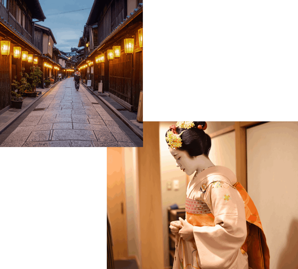 祗園の静寂・お茶屋に漂う香り、芸・舞の宴を共に。